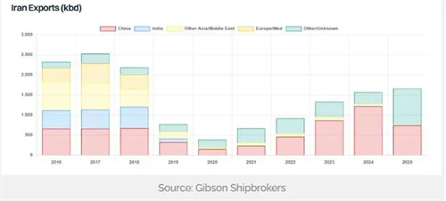 反之,若與華盛頓達成和解,或將推動伊朗石油出口回歸常態。盡管這一進程可能耗時經年,但對油輪市場的影響將極為深遠。2017年制裁解除的高峰期,伊朗向國際市場出口逾250萬桶原油,而去年出口量預估為150萬桶。一旦制裁放寬,伊朗原油將迅速重返印度、歐洲、地中海及韓國等主要亞洲經濟體。盡管伊朗自有運力充沛,但大部分船舶難以通過主流買家的合規審查,這將促使貿易活動回歸常規噸位。Gibson估測,在年出口200萬桶的溫和情境下,若交易模式復刻2018年,制裁解除將催生25艘超大型油輪(VLCC)和20艘蘇伊士型油輪的運力需求。