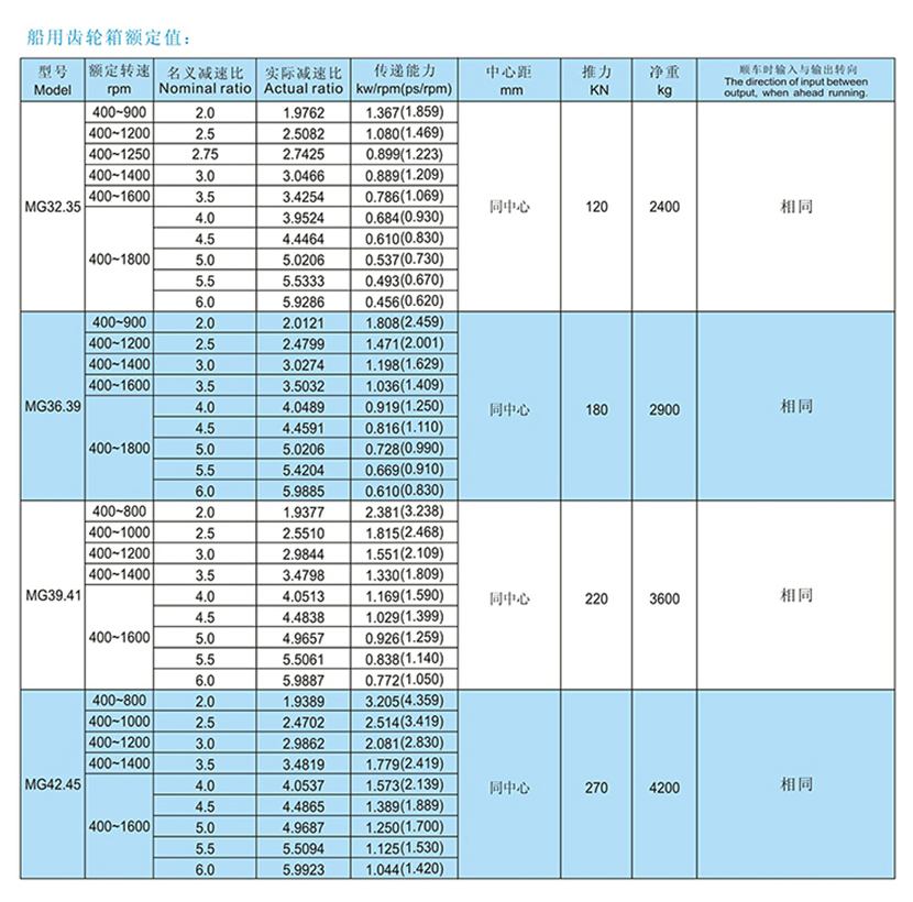 | MG系列大功率船用齒輪箱 | |||