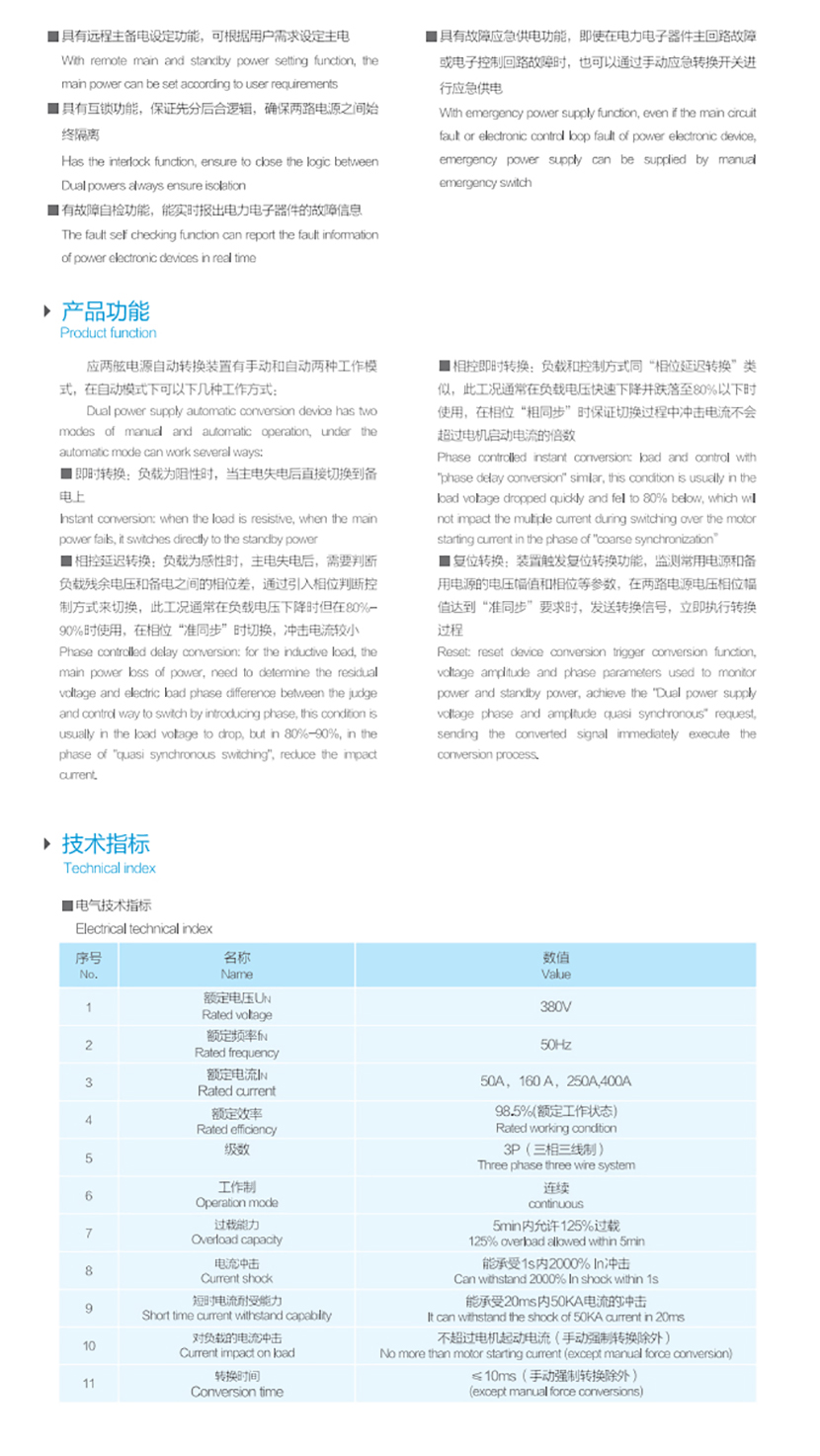 | 短時電流耐受能力: | 能承受20ms內50KA電流的沖擊 | 轉換時間: | ≤10ms(手動強制轉換除外) |