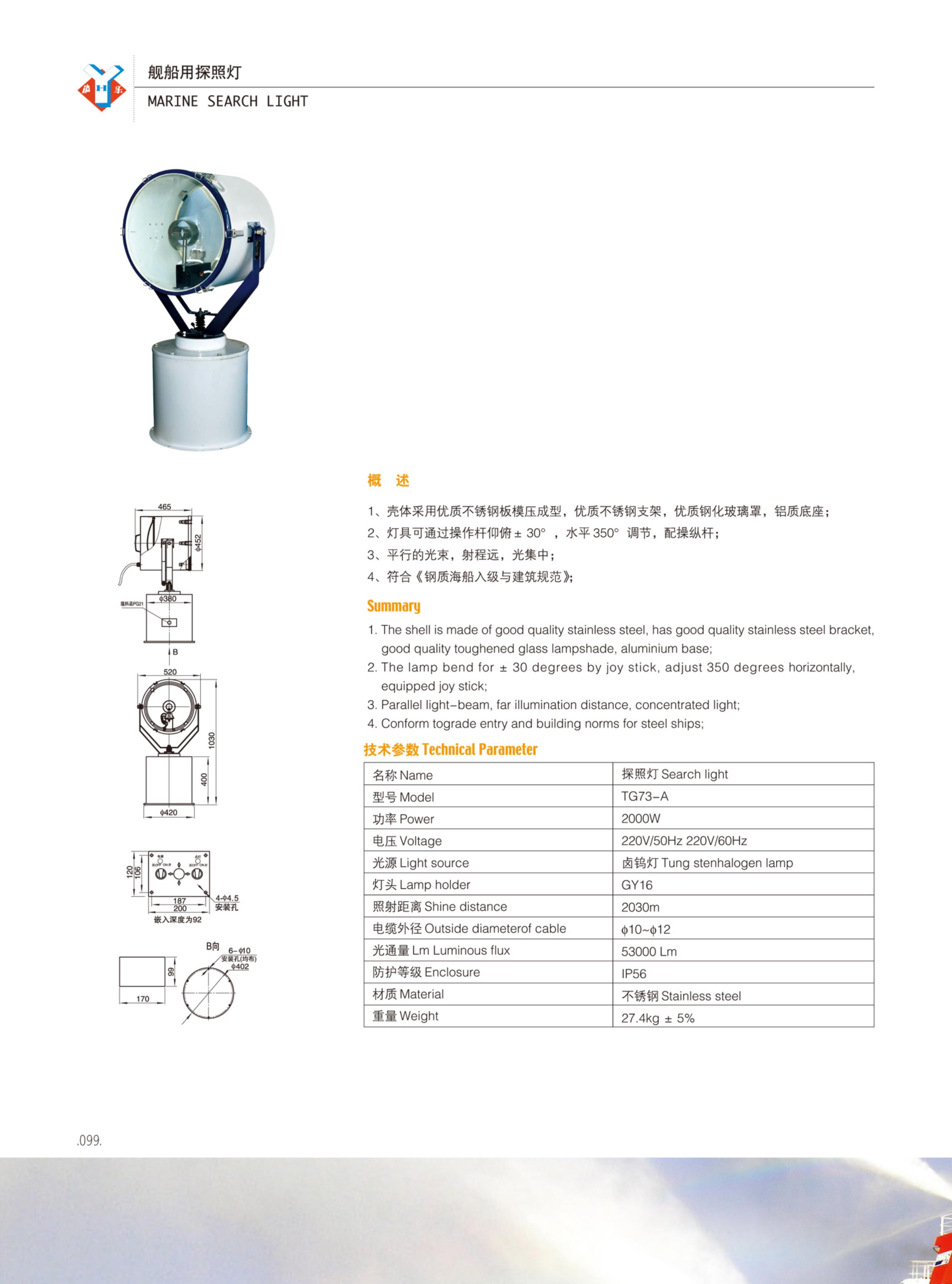 | 照射距離: | 2030m | 防護(hù)等級(jí): | IP56 |