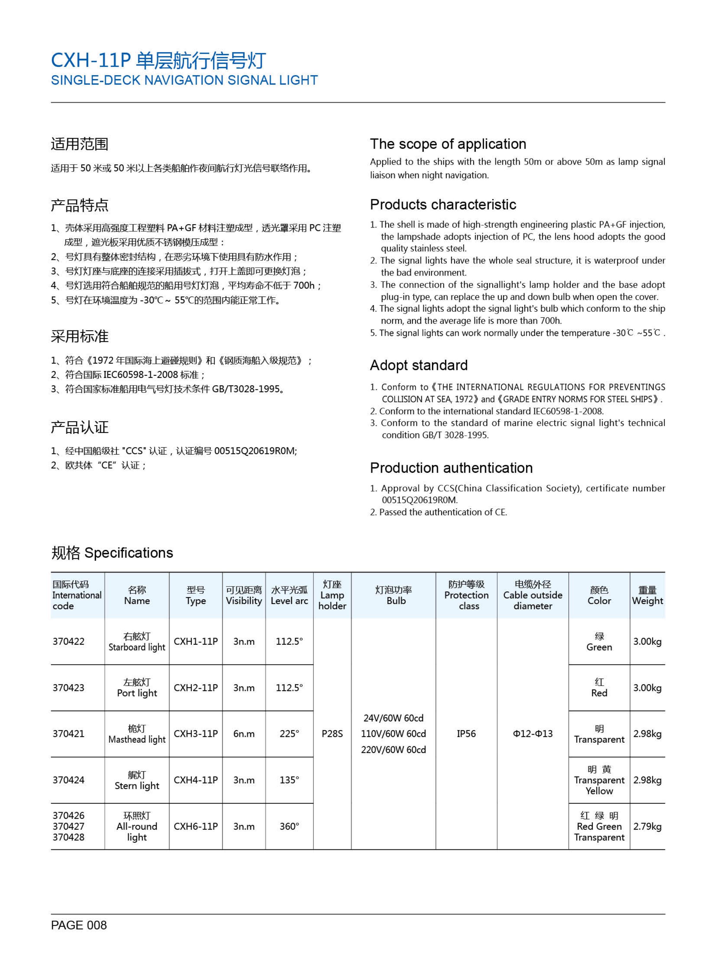 | 單層航行信號燈桅燈 | |||
