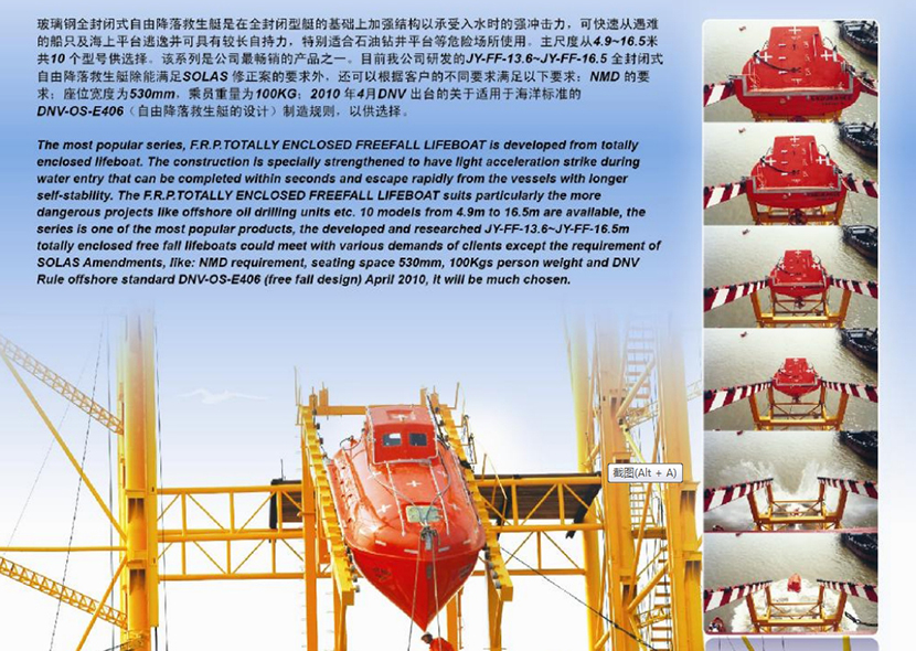 | 16.5米玻璃鋼全封閉式自由降落耐火型救生艇 | |||