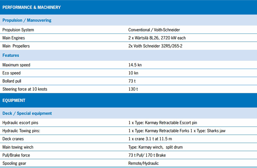 | 淡水: | 83m3 | 燃油容量: | 394m3 |