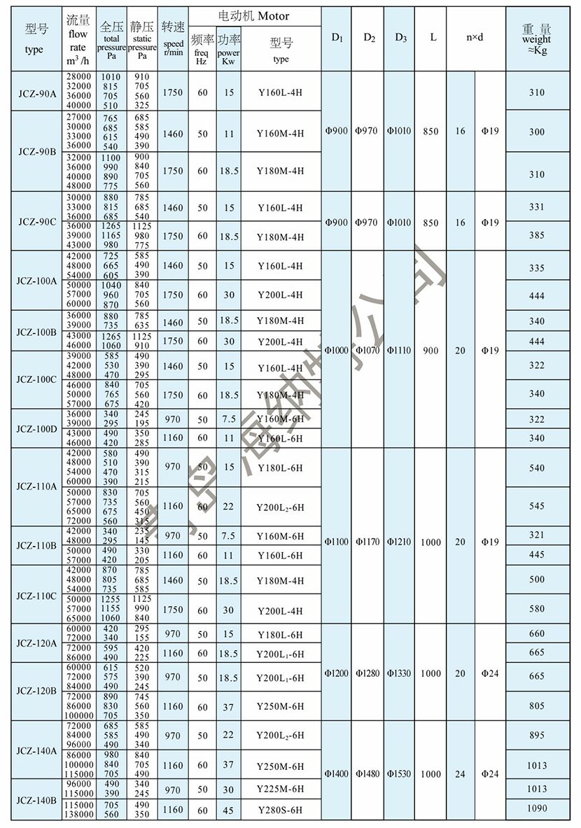 | 全壓: | 470Pa | 電機功率: | 15kW |