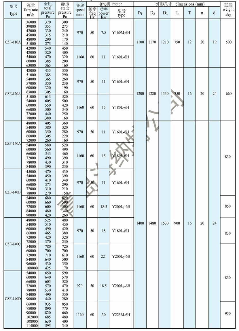 | 全壓: | 275Pa | 電機功率: | 7.5kW |