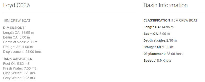| 總長: | 14.95m | 航速: | 18.9kn |