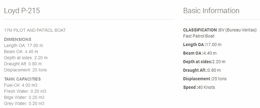| 總長: | 17.00m | 航速: | 40kn |