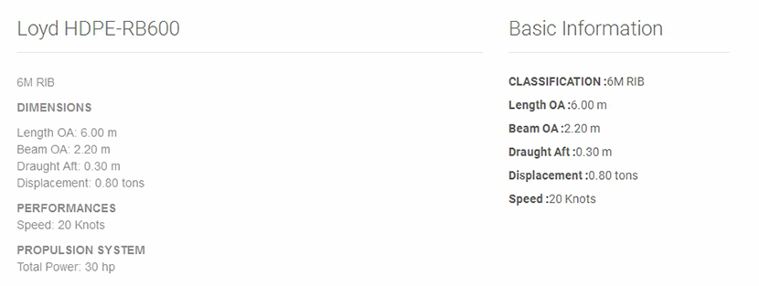 | 總長: | 6m | 航速: | 20kn |