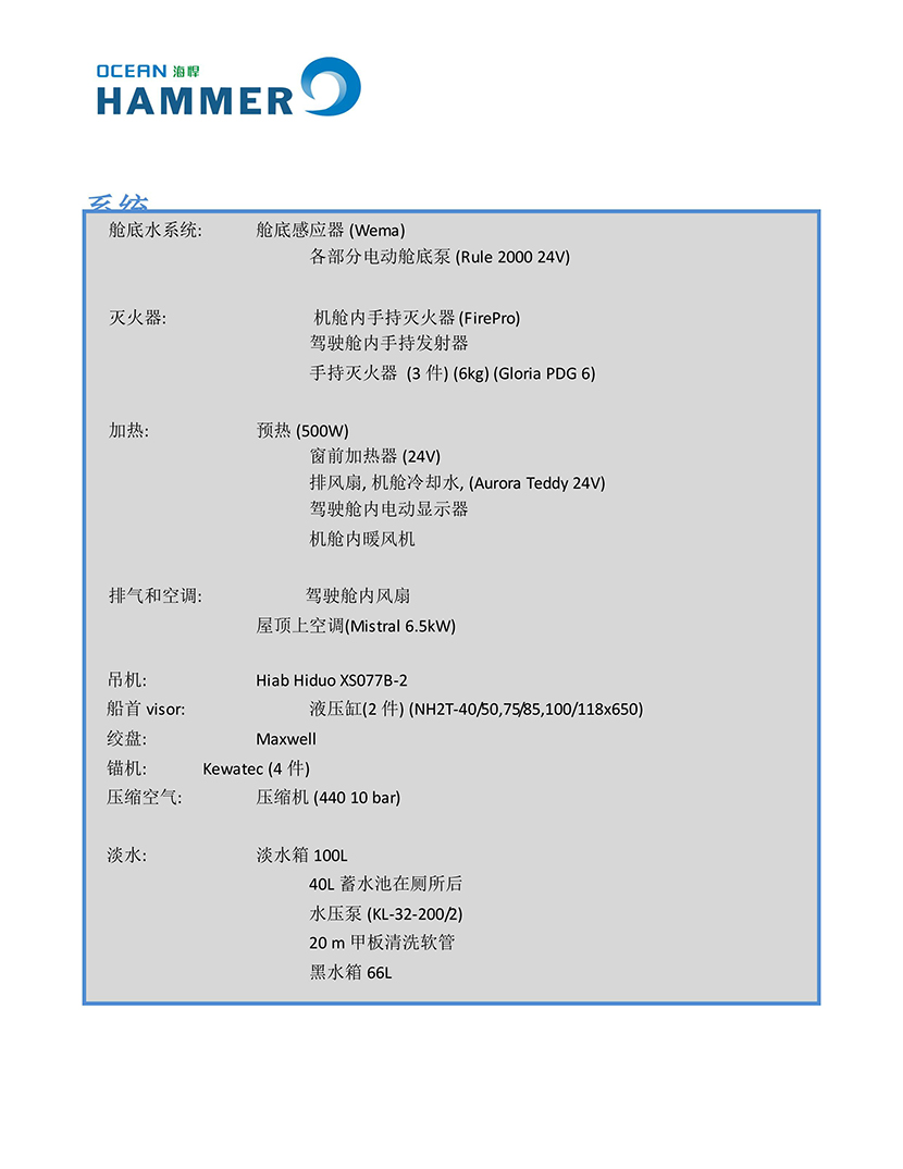 | 燃油容量: | 2×1000L | 船組人員: | 8P |
