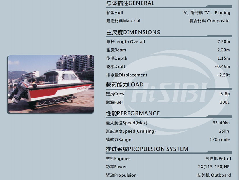 | 總長: | 7.5m | 航速: | 25kn |