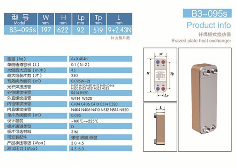 單片熱換面積: 0.095 m3 板片通道類型: D