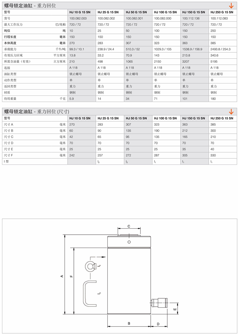 | 螺母鎖定重力回位油缸 | |||