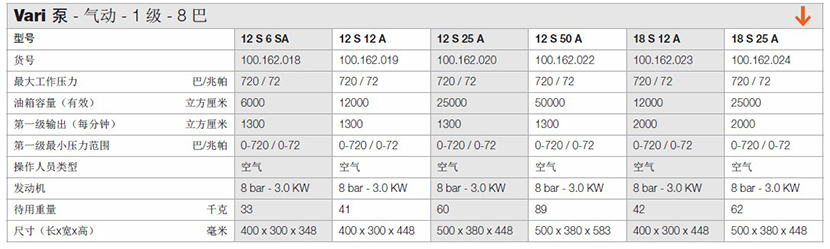 | 氣動1級8巴Vari泵 | |||