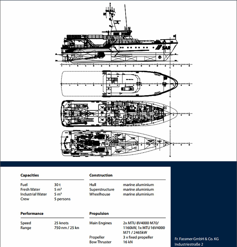 | 推進裝置: | 3 x fixed propellers | 型寬: | 7.80m |