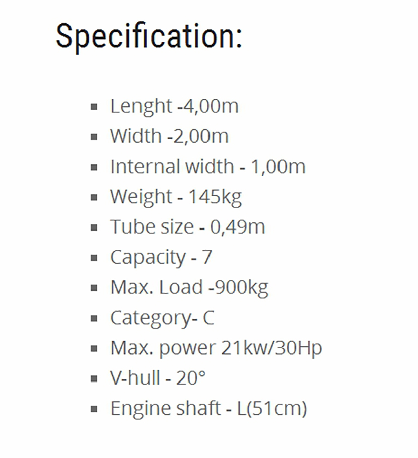 | 總長: | 4.00m | 最大乘員: | 7p |