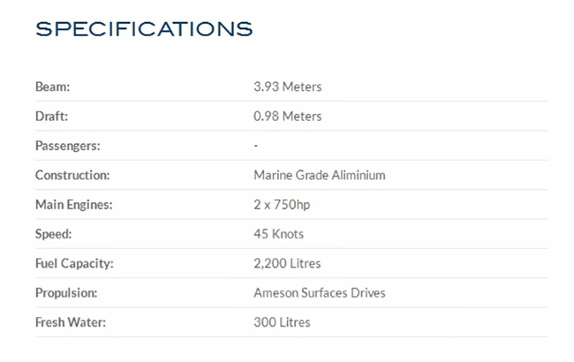 | 航速: | 45kn | 船體材料: | 鋁 |