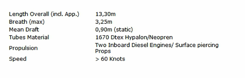 | 總長(zhǎng): | 13.30m | 航速: | 60kn |