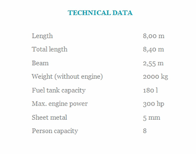 | 總長(zhǎng): | 8.40m | 最大乘員: | 8p |