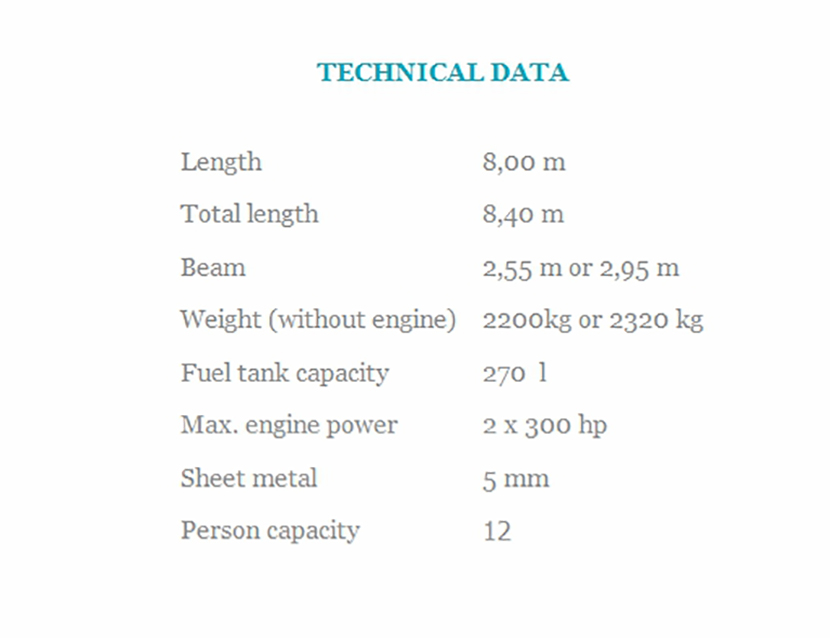 | 總長: | 8.40m | 最大乘員: | 12p |