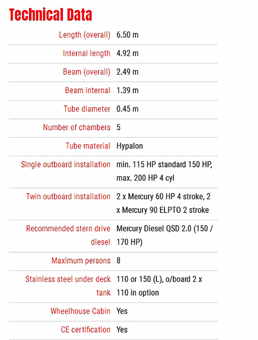 | 6.5米剛性船體充氣巡邏艇 | |||