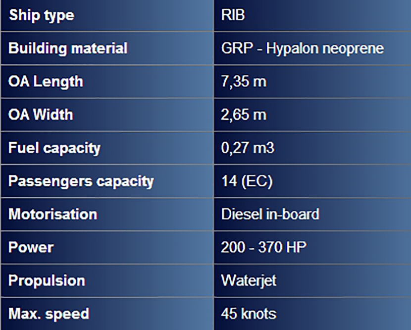 | 7.35米剛性船體充氣巡邏艇 | |||
