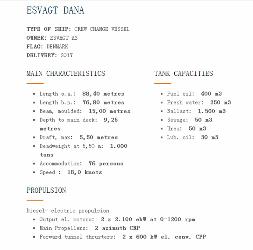 | 污水: | 50m3 | 發動機功率: | 2x2100ekw |