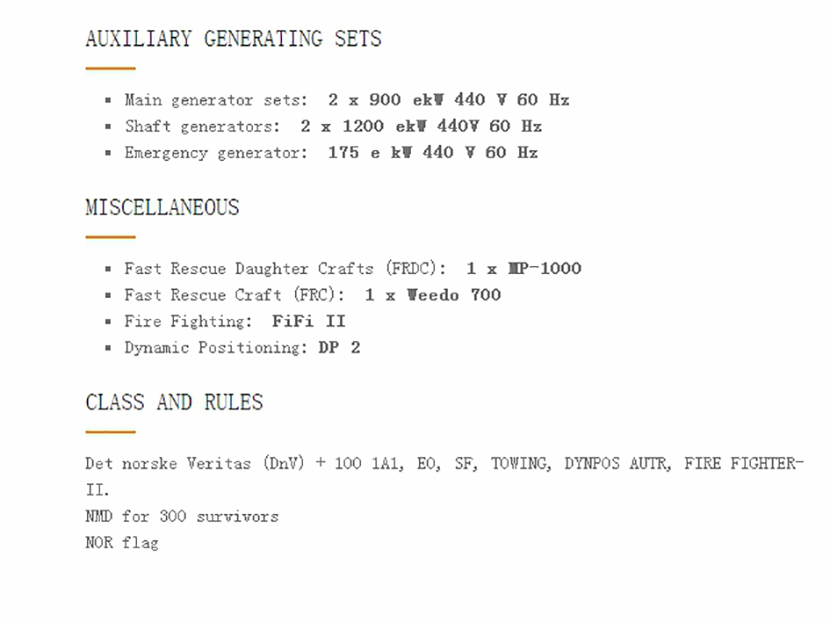 | 燃油容量: | 590m3 | 發動機功率: | 2x2500kw |