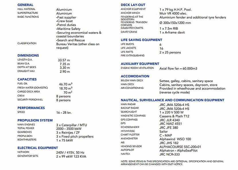 | 總長: | 33.57m | 航速: | 28kn |