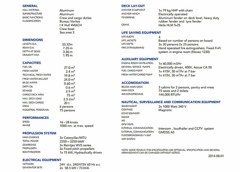 | 發電機組: | 3×Caterpilar /MTU | 船組人員: | 6P |