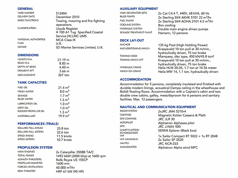 | 發動機品牌: | Caterpilar 3508B TA/C | 發動機功率: | 2×746 kW at 1600rpm |