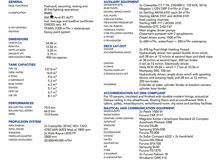 | 發動機品牌: | Caterpilar 3516C HD TA/D | 發動機功率: | 2×2350 kW at 1800rpm |