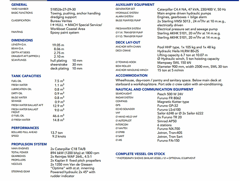 | 發動機功率: | 894bkW at 1800rpm | 推進裝置: | 2×Kaplan II fixed pitch, propellers |