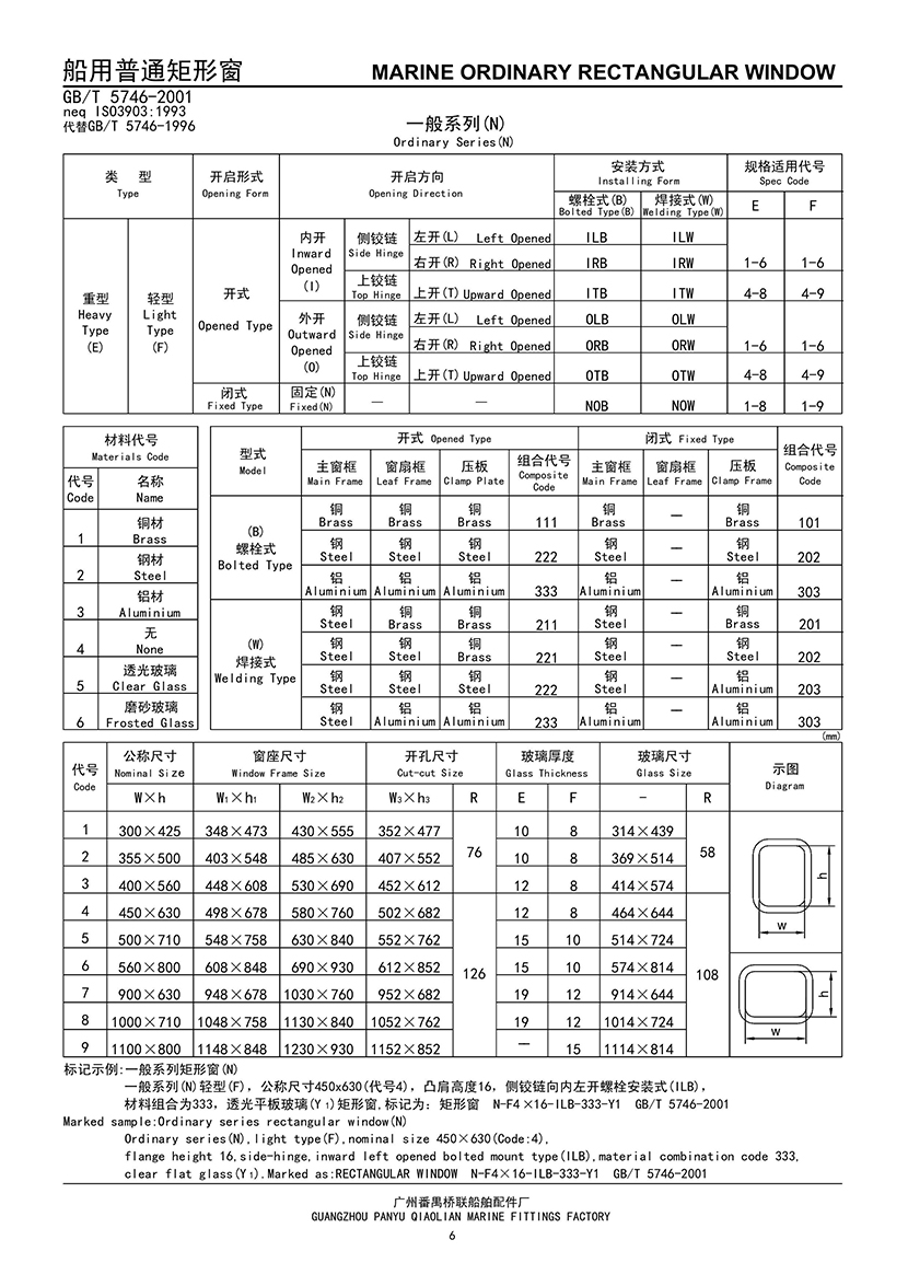 | 船用螺栓安裝式普通矩形窗 | |||