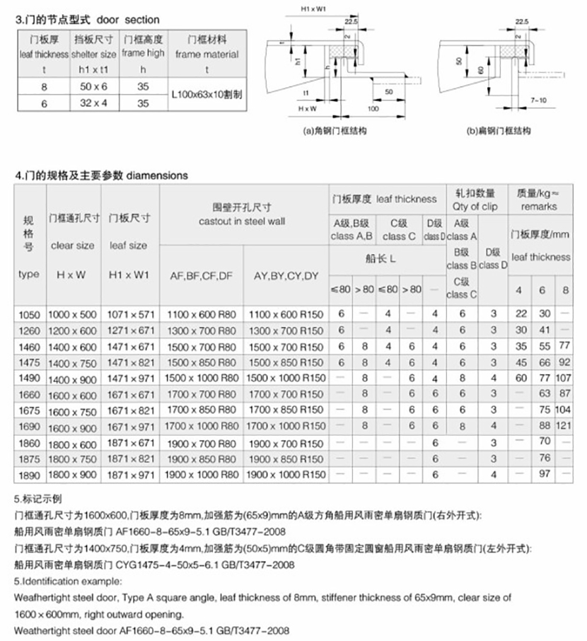 | 船用風(fēng)雨密單扇鋼質(zhì)門(mén) | |||
