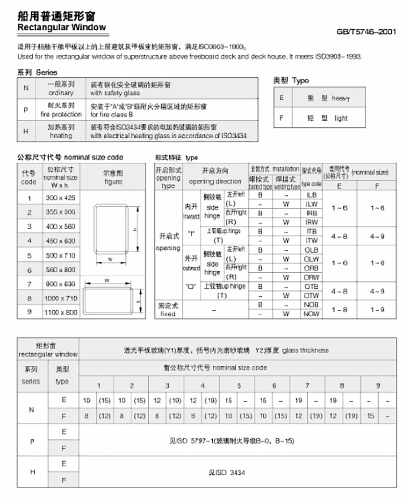 | 船用焊接安裝式普通矩形窗 | |||