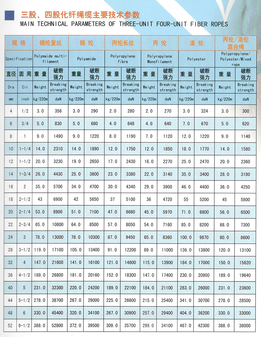 | 丙綸滌綸混合三股四股化纖繩纜 | |||