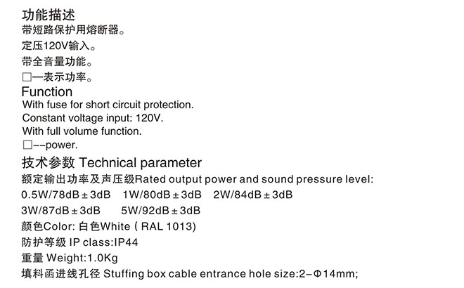 | 功率: | 2W | 聲壓等級: | 84dB |