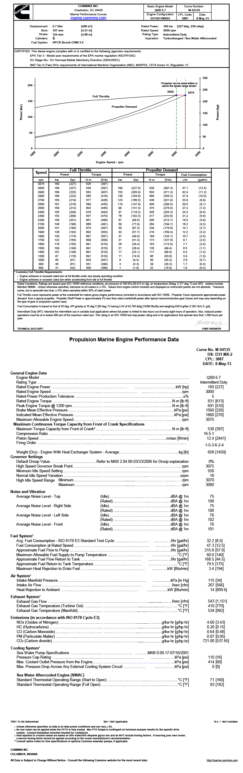 | 排放標準: | EPA Tier 3-Model year requirements of the EPA marine regulation(40CFR1042);EU Stage IIIa-EC Nonroad Mobile Machinery Directive(2004/26/EC);IMO Tier II(Two)NOx requirements of International Maritime Organization(IMO),MARPOL 73/78 Annex VI,Regulation 13 | ||