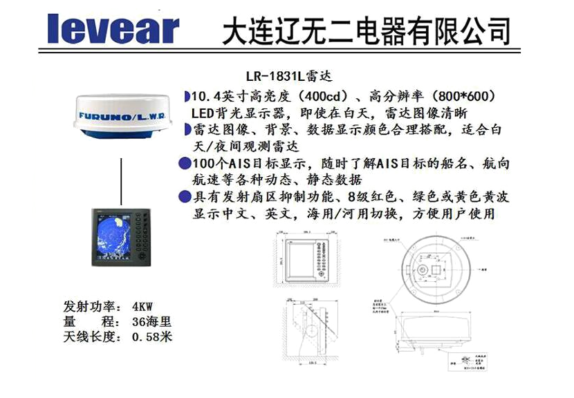 | 輸出功率: | 4kW | 探測范圍: | 36海里 |