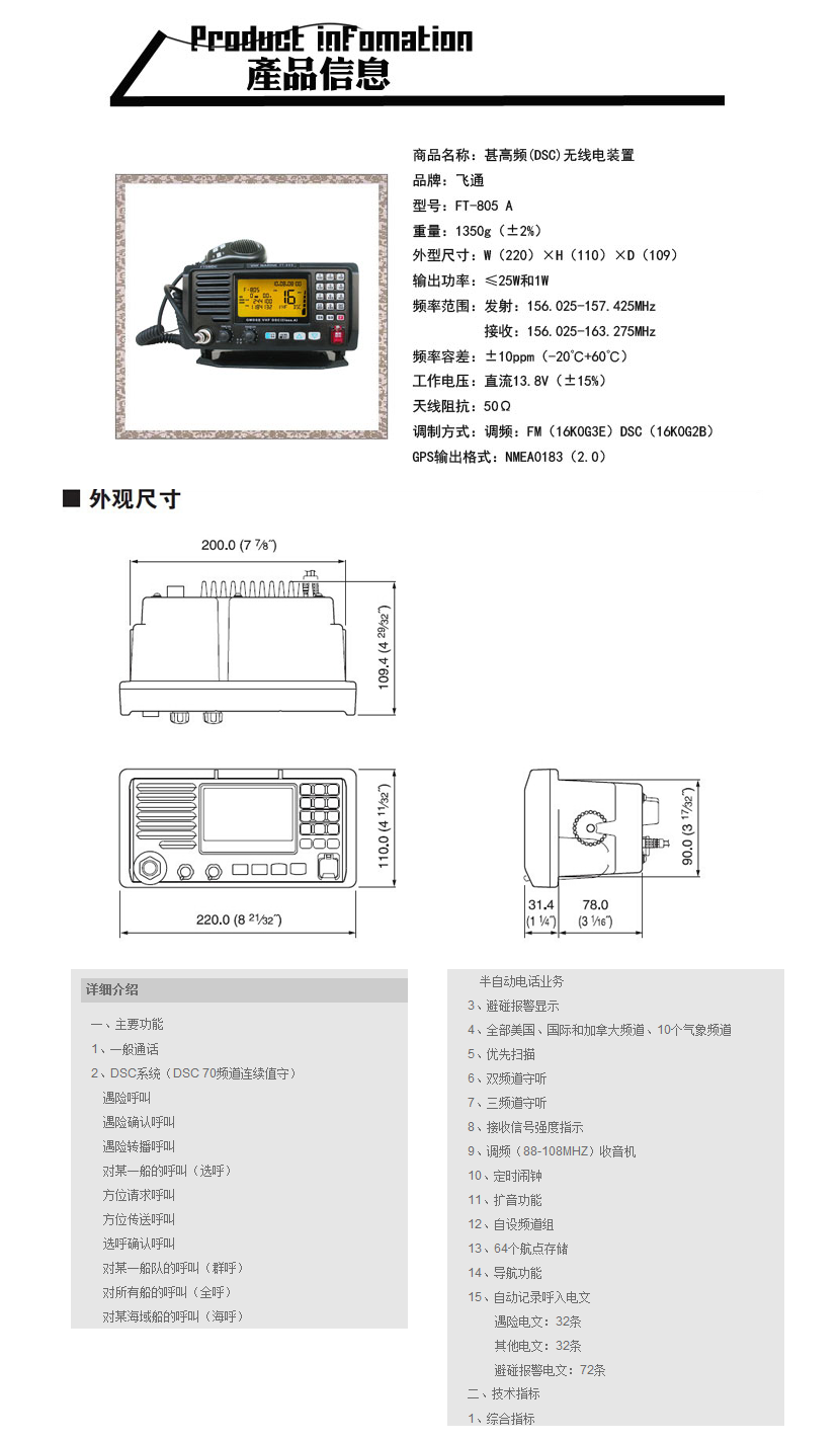 | 工作電壓: | 13.8VDC | 接收頻率: | 156.025-163.275MHz |