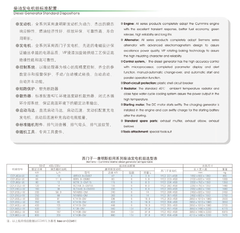 | 西門子-康明斯船用系列柴油發電機組 | |||