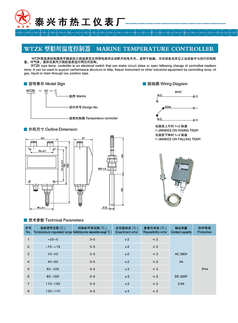 WTZK型船用溫度控制器