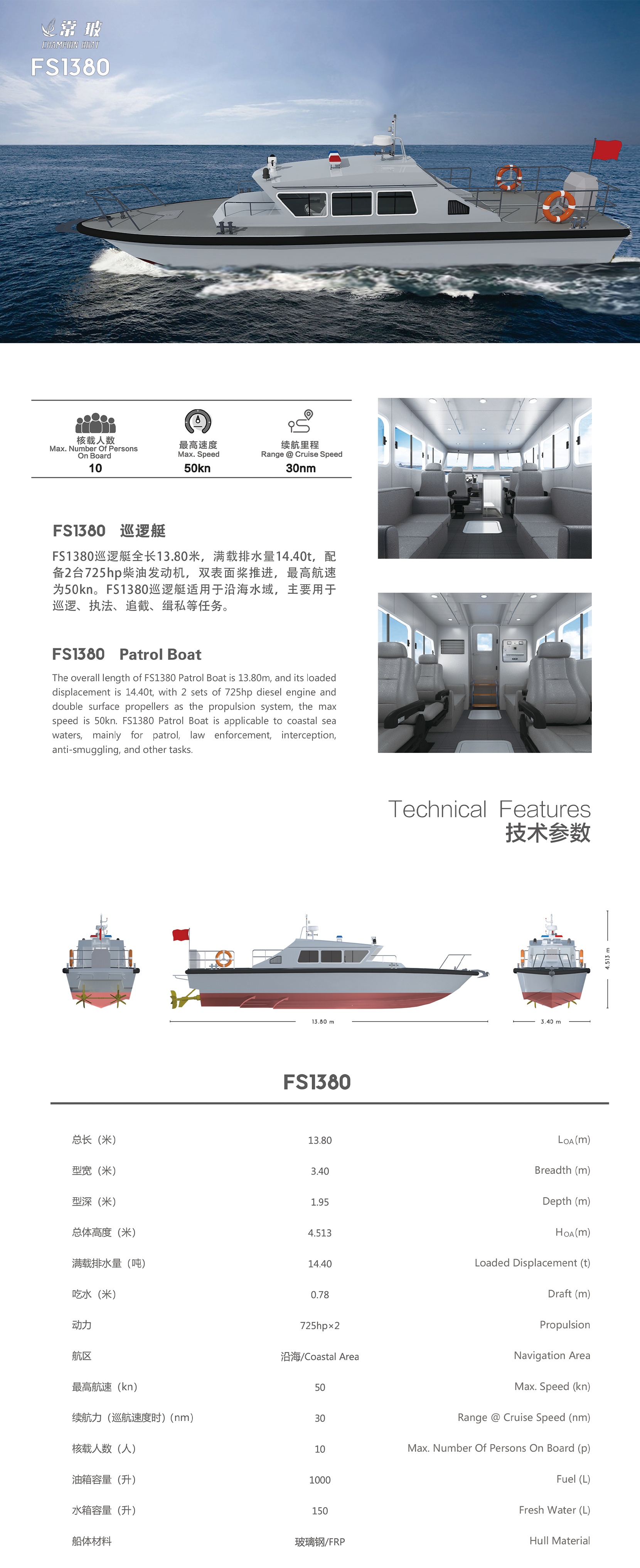 | 總長(zhǎng): | 13.80m | 航速: | 50kn |